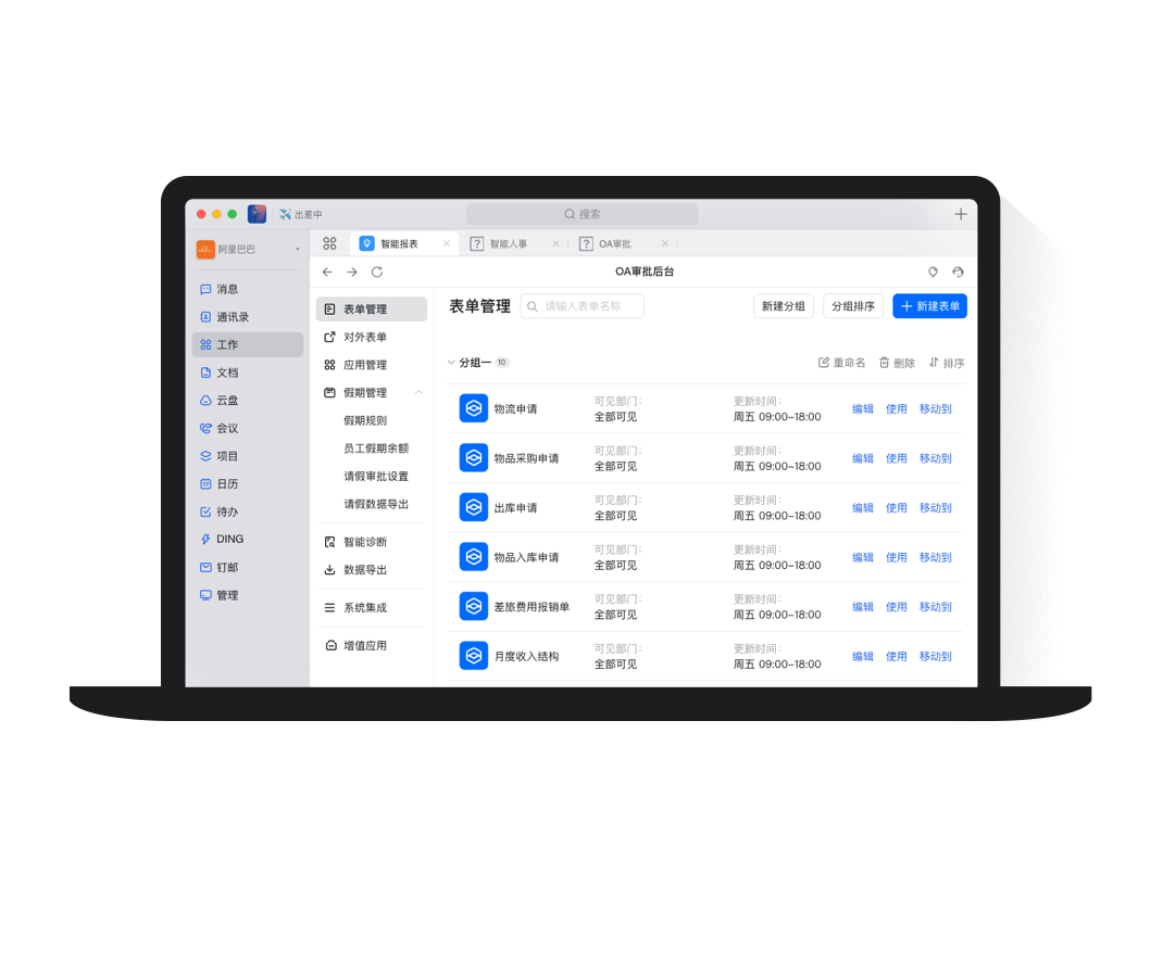 行政管理物資領用、出入憑證、車輛調配、訪客登記等擺脫紙質流程。