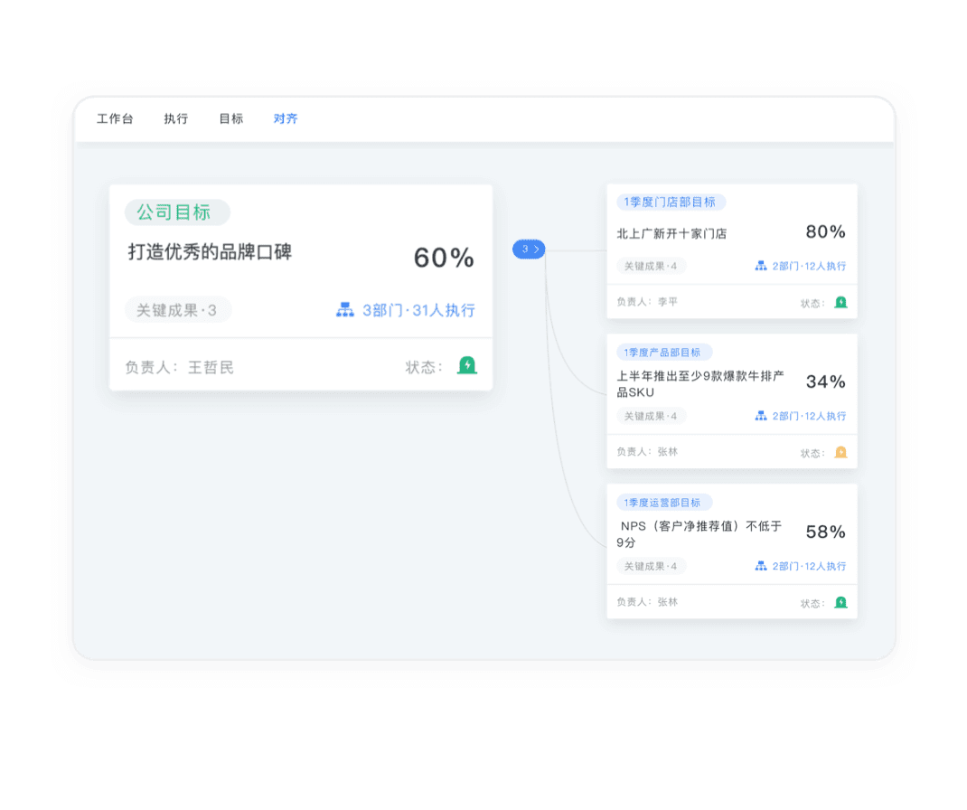 組織目標(biāo)對齊,員工更清楚自己在團(tuán)隊中的職責(zé);目標(biāo)拆解到任務(wù),進(jìn)度實時可見,加速目標(biāo)落地。