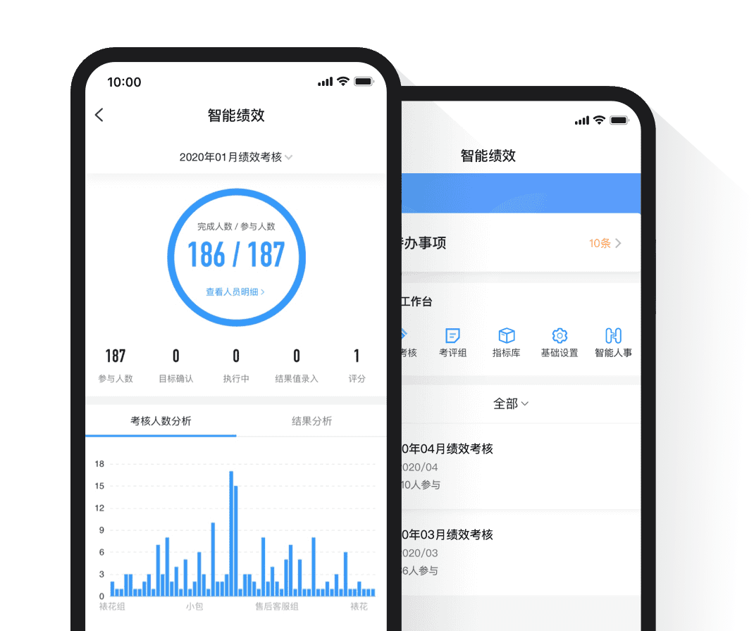 考核管理在線考核、報表可視, 績效考核賞罰分明。